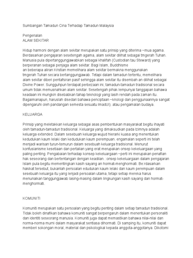 Berlatarbelakangkan lembaran sejarah tamadun melayu wajar menjadi landasan kepada pembentukan tamadun malaysia. Dalam bidang politik, nilai utama yang diberikan tumpuan ialah integrasi nasional (perpaduan nasional). Tamadun china dan relevansinya di malaysia nazhif bin mohd jamin muhd hazim bin muhd azhar muhammad nazrol hakim bin mohd sidi mohamad shahrul fahmi bin mat riffin che wan nurmas azura binti che wan hasanuddin atif adilah binti abdul rahman nur hasnaa binti mohd. Titas dr.salam tamadun cina : (titas dr.salam) tamadun cina :